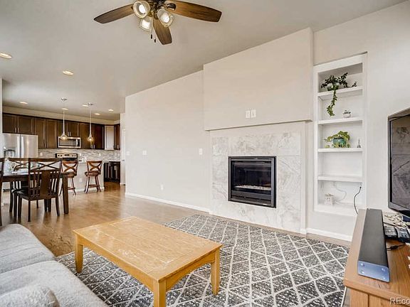 Beautiful 3 bed, 3 bath house with mountain views in the heart of Parker! Awesome upgraded kitchen with granite counters, island, pantry, backsplash, refrigerator, stove/oven, dishwasher, microwave oven, pendant lights and can lights. Opens into dining room and family room that has a fireplace and ceiling fan. Upper level includes a Master Suite w/ attached bathroom, dual sinks, granite counters and walk in closet. Two more bedrooms and a full bathroom upstairs as well, plus an upper level laundry room with built in shelves. Fenced backyard features a patio and raised garden. Covered front porch, 2 car garage with shelving, wood floors, newer roof, window coverings, high ceilings in basement. Mountain views! Short walk to the neighborhood park and pool. Easy access to Parker Rd, E470 and I-25. In nationally recognized Douglas County School District.