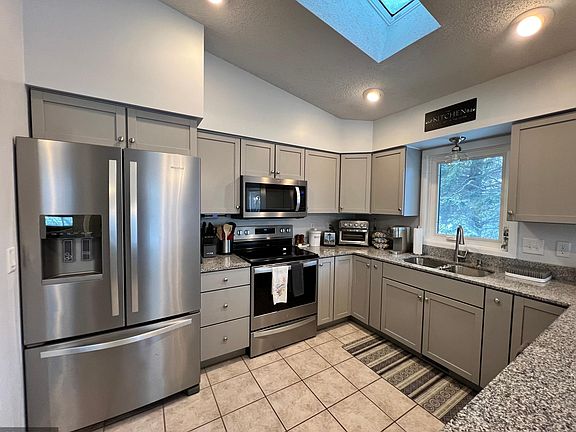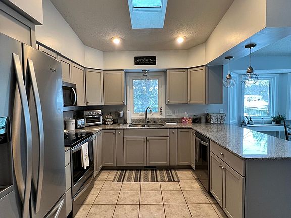 Inside you will find four large bedrooms, large closets with organizational systems, three updated bathrooms (including a new master bath!), vaulted ceilings, skylights, a beautiful stone fireplace, a walkout basement, and a brand new kitchen! The oversized, insulated and finished two car garage offers plenty of storage and lighting, and the flat cement driveway is so convenient. All windows and sliding doors replaced, a new roof and gutters in 2019, and a new garage door in 2020. Truly turnkey and move-in ready, this is a great opportunity to find your new home in the award-winning 194 school district. Quick closing preferred.