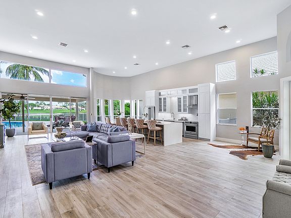 Outstanding long vistas of golf course and lake views are the backdrop to this one-story gem that is situated on one of Polo Club's most charming streets. The brilliantly re-imaged open and modern concept of this completely remodeled home offers soaring ceilings and sun-drenched rooms. An impactful stone feature wall sets off the great rooms dynamic balance juxtaposed by a waterfall edge kitchen island. The master suite encompasses his/her separate bathrooms and closets with access to the patio and the wide open views. 2019-07-10