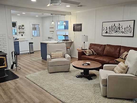 The original home, constructed in 1969, underwent expansions in 2005 and has since received updates, including a repainted exterior and interior, as well as the addition of a 50-amp Tesla charging station. Inside, this spacious residence features a generous living area with new vinyl flooring. Three sizable bedrooms. Upgraded bathrooms, a wood stove, and a covered front porch contribute to the property's charm.