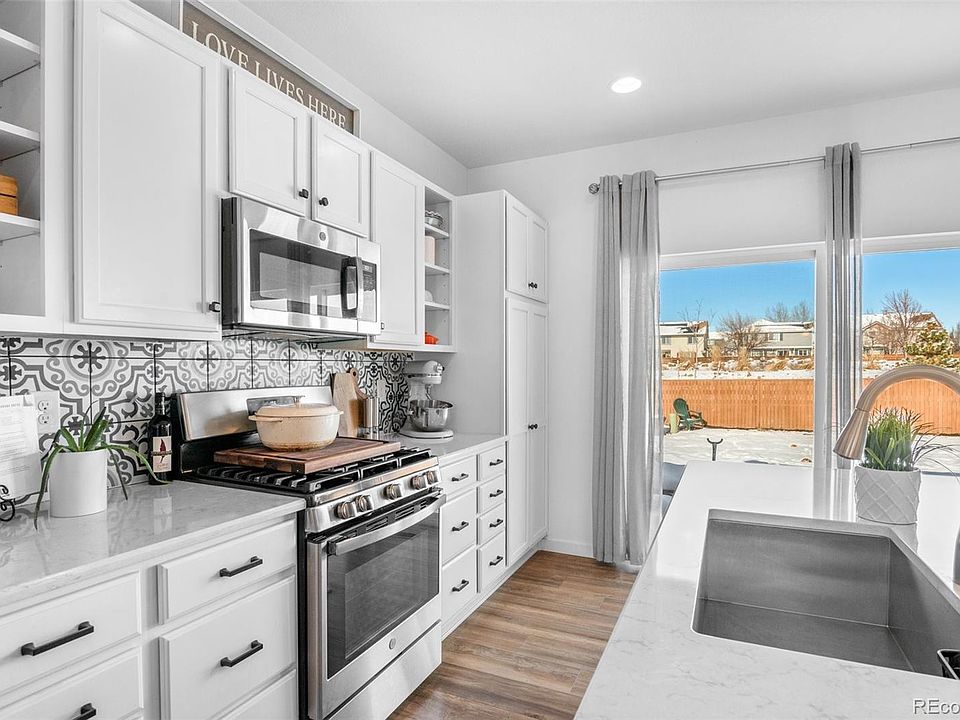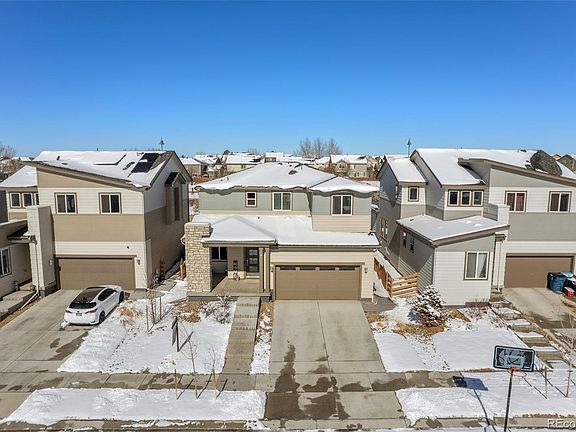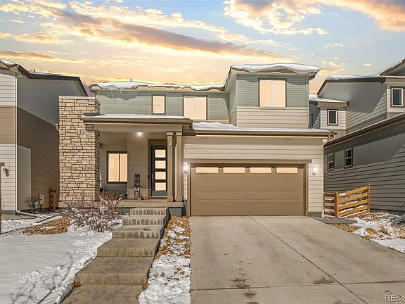 Welcome home to this beautiful home in the highly sought after Reunion Community. This Shea Spaces home is well appointed with modern finishes and an open floor plan. Perfectly situated on a desirable large exterior lot, this home has an inviting covered front porch and a spacious concrete patio in the large backyard. As you enter, you are greeted with sleek laminate flooring throughout the entire main floor. The kitchen features white cabinets, a large kitchen island with extra storage, quartz countertops and a highly desired gas range. Upstairs you will find an expansive primary bedroom with attached en-suite. The primary bathroom boasts dual sinks, a large tiled shower, feature wall and an oversized walk in closet. You will also find two additional bedrooms, a full bath and large loft, perfect for an office or playroom. The laundry closet is conveniently located on the upper floor as well. The unfinished basement, including a rough-in, is a blank canvas for you to turn it into whatever your heart desires. Location is everything! This house is within walking distance of Southlawn Elementary School and one of the two community pools. Even more than this house, you will love the hometown feel of the Reunion neighborhood. From the beautiful parks and lakes to the recreation center, pools and coffee shop, you almost never need to leave the neighborhood. It offers that small town feel but only a hop skip and a jump to DIA and downtown. Don't miss out!