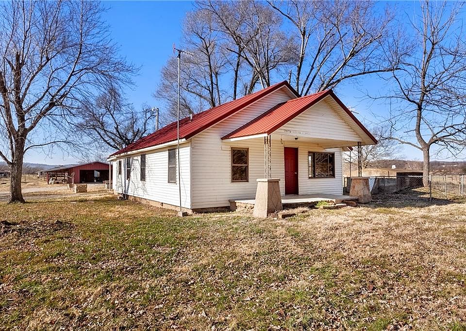 Not many of these left! This approx 53 acre farm is wide open and ready for livestock. Fenced and cross fenced for rotational grazing, 3 ponds, creek, multiple farm buildings. Neat and clean 2 bed/2 bath farmhouse with metal roof, vinyl windows and fresh paint also has add'l space for a 3rd bedroom or office. Sweet front porch for rocking and carport/patio on rear. 2 wells, rural water, storm cellar, squeeze chute/pen. Beautifully located w nice views, just down the road from the Morrow Country Store.