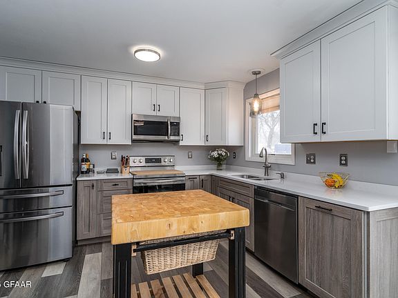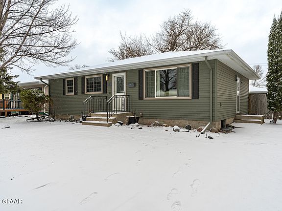 Beautiful 3 bed 2 bath ranch style home in nice N GF location. Home has an updated kitchen/dining, large living space, updated bath, and 3 bedrooms on the main floor. Basement is finished with a fun family entertainment room, 2 bedrooms without egress, 3/4 bath, and spacious utility/laundry/storage room. This home has many great features including fenced backyard, big 2 stall detached garage, steel siding, and forced air heating/cooling.