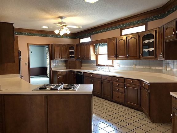 - KITCHEN DESC: Pantry, Crown Mold, Ceiling Fan, Tile, 9? Ceiling