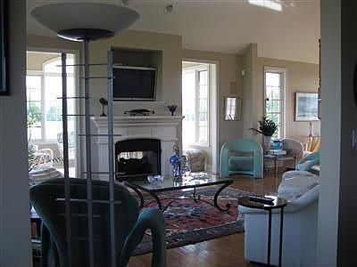 Lovely waterfront in Sand Creek. This outstanding all brick 1.5 story home sits on .9 acre of land and offers easy one level living w/elegant but casual formal spaces. Beautiful kitchen w/circular breakfast room, 1st floor master w/bath, laundry, guest bath. Main level great room & sunroom share a 2 sided fireplace. Moldings in the formal dining room; kitchen custom cabinetry w/built-in china buffet & wine rack, granite & stainless, under cabinet lighting, center island, pantry cabinets. Master suite & kitchen/dining area open to deck overlooking the water. Winding hardwood open staircase to upper level leads to two guest bedrooms w/Jack & Jill bath. Lower level features an added 1000 sqft of beautifully finished living space; family room/home theatre/library, and 4th.bedroom w/bath. Daylite windows thru-out the lower level. Partial unfinished basement space for storage. Three flat screen TV's, and all associated electronics enhance the casual atmosphere and offer great entertainment.