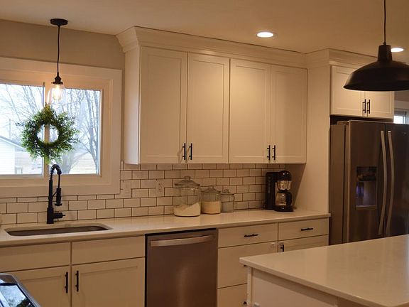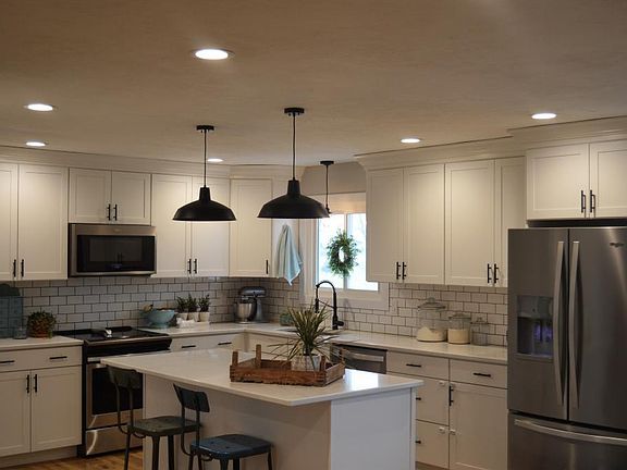 This gorgeous, COMPLETELY renovated home on 1 acre is located at the east edge of town. It's convenient to everything. Fantastic open concept with large living, dining and wonderful kitchen with white shaker cabinets, quartz counter tops, tiled back splash as well as engineered hardwood flooring throughout. The gorgeous master suite boasts an en-suite with a subway tiled master shower & vanity with quartz counter top as well as another full bath with tiled tub surround and vanity with marble counter top. This home is so well done. Don't miss a great opportunity to visit this exquisite home this Sunday Noon to 2:00 or Tuesday, February 26th from 4 to 6pm.