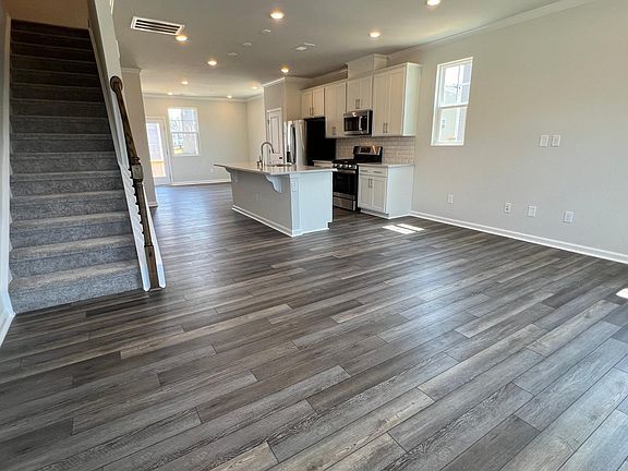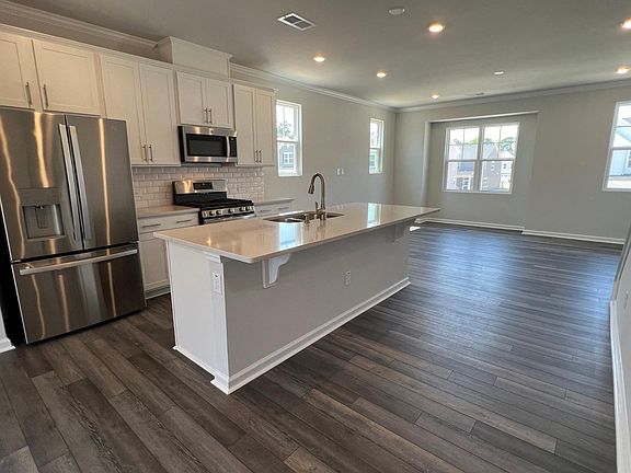 Check out this stunning new end unit luxury townhouse, designed for both elegance and convenience! The Manteo plan features a 1-car garage and an expansive kitchen island that opens to a spacious, flowing floor plan. On the first floor, you'll find a guest bedroom with a full bath, while the second floor boasts a fully upgraded kitchen with quartz countertops, modern white cabinets, and EVP flooring throughout. The third floor is home to two generously sized bedrooms, each with its own attached bath. This master-planned community offers fantastic amenities, including a large outdoor pool, walking paths, and more. Plus, with HOA maintenance covering lawn care, your weekends are free for relaxation. Walk to new Elementary School, Included with this home are Washer dryer, and fridge. Fiber optic high-speed internet is also included. Located close to major highways and shopping, this townhouse is a must-see!
