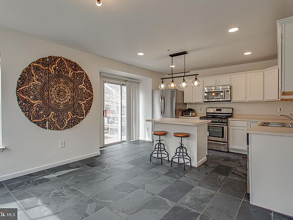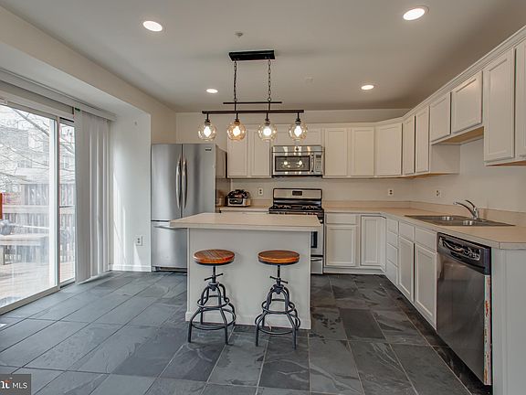 Fantastic 3 level end unit townhome with brick front and brick side. Extra windows for tons of natural lighting. Nice open floor plan with 9' ceilings, hardwood floors, crown molding and bay window in Living room and Dining area. Designer chandelier and custom mirror wall in Dining area. Spacious island kitchen with unique slate flooring, stainless steel appliances, LED lighting, plus sliding glass door leading to a large deck overlooking the fenced backyard. Guest half bath also on the main level. Upper level features beautiful owners suite bedroom with dramatic vaulted ceiling, box bay window and walk-in closet. Owners suite bathroom also has a vaulted ceiling, tile surround soaking tub. Two additional guest bedrooms and updated hall bathroom. Fully finished walkout basement has a cozy fireplace with slate surround and wood mantle in recreation room, additional remodeled full bath, laundry area and sliding glass door leading to backyard. Updated HVAC system. Updated modern light fixtures, plus a whole lot more. Simply a must see.
