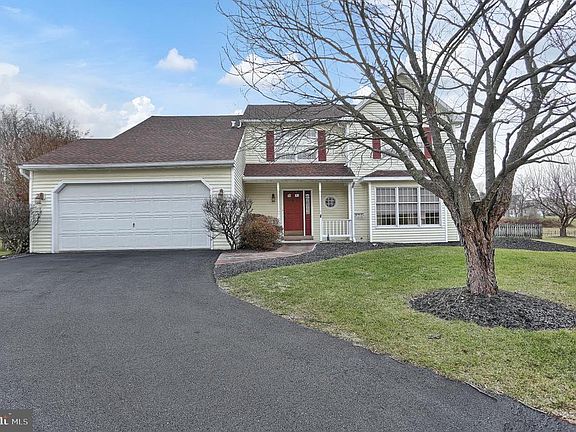 Blue Meadow Farm two-story with an attractive floor plan located on a quiet cul-de-sac with no traffic other than neighbors. Home backs to common wooded area with an abundance of wild life that will keep you entertained year round. Close to Colonial Park and I-81 making commuting in any direction super convenient. Half acre with fenced rear yard and deck with pergola covered with wisteria that provides privacy in summer. Community walking trail that runs throughout the community and is great for jogging or walking pets. Spacious kitchen with new granite counters, stainless steel appliances and an over sized island that is built for any chef and functional when you are cooking for large numbers. Kitchen nook with room for a dining table that is open to family room with a two-story vaulted ceiling, towering brick gas fireplace and skylight. New luxury vinyl plank flooring throughout first floor, formal dining room with crown molding and chair rail and a living room with a triple window with wide built-in window bench with storage. First-floor laundry room, finished basement, master suite with walk-in closet and master bath with whirlpool, separate shower, and double bowl sink. Well maintained with numerous updates. Roof replaced 2015, water heater, washer and dryer 1 year old, AC unit 2 years old, dishwasher and oven 4 years old. The list goes on, come see for yourself. Wonderful home, perfect location and best of all, a price that will move you!
