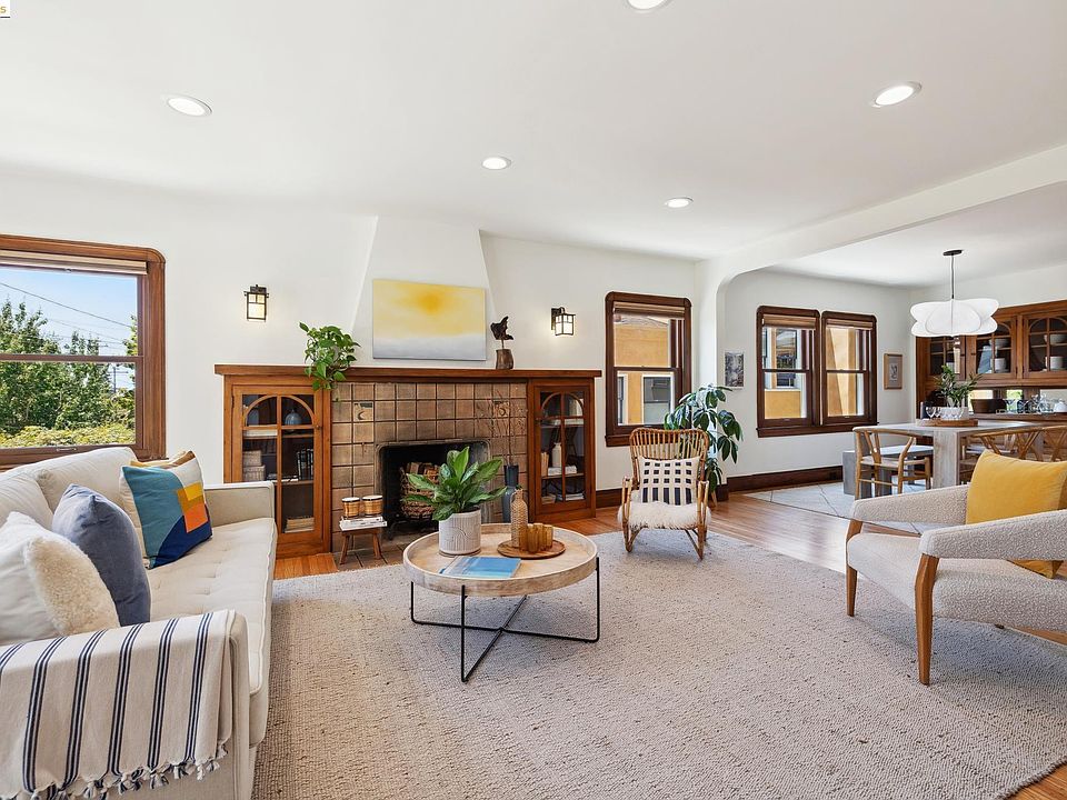 If one could handpick a home based on it being on a lovely street & its proximity to an abundance of cafes, shops, specialty markets, parks, & public transit, 1719 Buena would be that home. Nestled on one of the sweetest streets in the Northbrae neighborhood, this beautiful, sun-filled 3 bedroom, 2 bath bungalow features a gracious open living rm and dining rm, with handsome, finely preserved, crafted woodwork & built-ins, a fireplace with its original tile-work and a large picture window, a refreshed country kitchen w/ new hardwood floor, generous storage & counter space, a glorious backyard, that whispers tranquility, w/ many fruit trees, including apple, lemon, plum, persimmon and fig, berries, roses & three raised beds for veggies, herbs and flowers, and a great split level floor plan. Numerous upgrades include a new roof, owned solar panels, a Tesla car charger, an engineered seismic retrofit and dual pane windows. Additional amenities include a long driveway and a detached oversized one plus car garage, fresh paint in and out, gleaming hardwood floors, a wonderful front porch and sewer lateral compliance. Rarely do homes come on the market in this superb location. You may even consider giving up your car when you realize how truly special and convenient this location is.