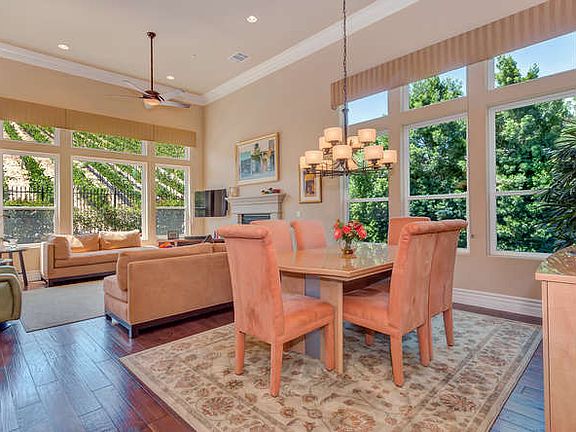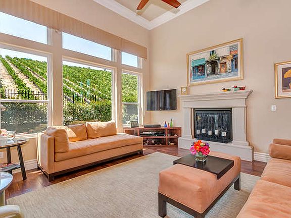 Over 55 Resort living . Nearly new Signature High Ceiling Costa Dorado model w/Premium Lot backing to the Vineyards. Utility Rm., lg. Pantry, Extensive Wood Flrs, Plantation Shutters, remote Shade Awnings, 70" wall TV, SS Appliances, Gas Fireplace and a wonderful private View of the Vineyards