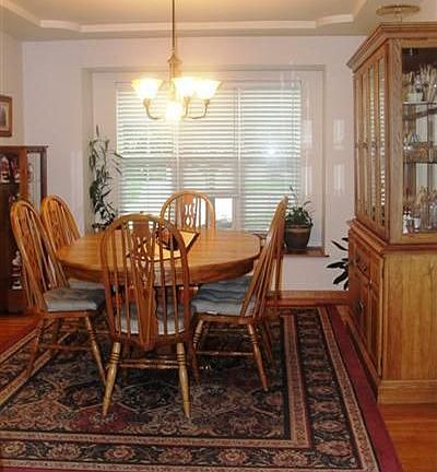 Nestled quietly on a meticulously maintained lot at the end of a cul de sac in a sought after neighborhood, this home is sure to please. The soaring foyer with gleaming hardwood floors welcomes you home. Rich crown molding and a lovely bay window frame the inviting living room. The spacious eat-in kitchen is dream with gleaming countertops and abundant cabinetry. Give those family meals that special touch as you dine in the wonderful open dining. The stunning rock fireplace warms the hearth room creating a wonderful place to unwind at the end of the day. Sleep easy under the coffered ceiling of the luxurious master suite after taking advantage of the jetted tub. Enjoy BBQ on the deck as the mature trees create a natural screen of privacy. The full basement is configured for future expansion with the perfect layout for a fun sun filled family room while maintaining ample storage.