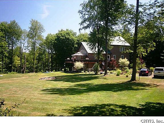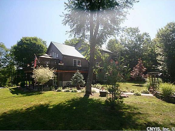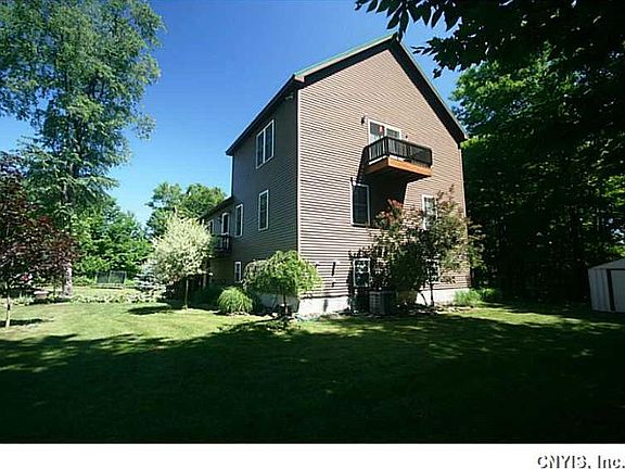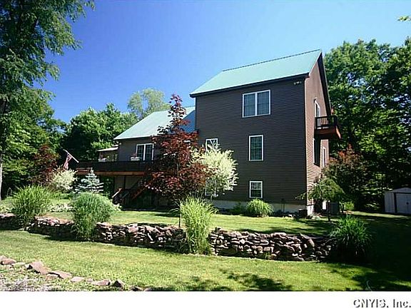 Beautiful contemporary home in the Town of Constantia set on 3.2 Acres with additional 40 acres available. This 5 bed/3 bath home features soaring cathedral ceilings, hardwood floors, stainless steel appliances, large master suite with balcony and garden tub on the inside, outside features a wraparound deck, 30x50 pole barn with ample garage space and horse stalls, auxiliary wood boiler to provide endless heat and hot water. This private location is ideal for horses and quiet country living.