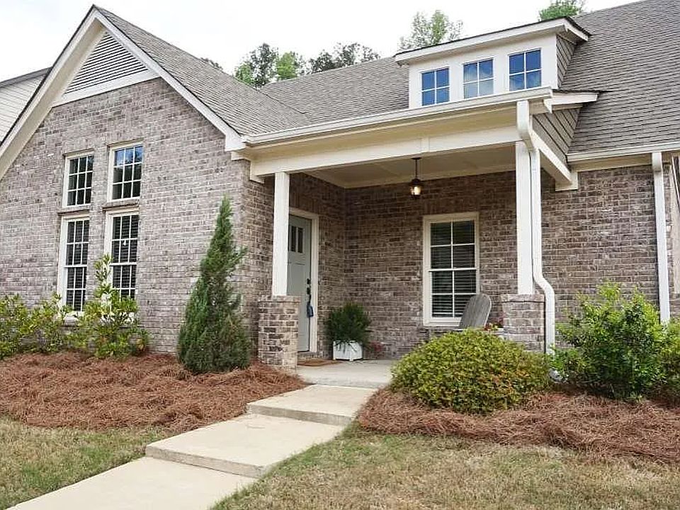 Welcome to this immaculate 3-bedroom, 2-bath full-brick home designed for effortless single-level living. As you step inside, you're greeted by a bright and open floor plan that seamlessly connects the living spaces. Vaulted ceilings and hardwood floors create an inviting atmosphere, while a cozy gas fireplace adds warmth to the living area. The kitchen is a true highlight, featuring ample cabinetry, stainless steel appliances, and beautiful granite countertops, all centered around a spacious island bar that's perfect for entertaining. The master suite offers a peaceful retreat with dual granite-topped vanities, a relaxing soaking tub, and a separate tiled shower. Outside, the covered patio overlooks a private, fenced backyard that backs up to serene woods, providing a perfect spot for unwinding after a long day. With a roomy two-car garage and meticulous upkeep throughout, this home is move-in ready and waiting for you to make it your own. One year minimum lease and renter is responsible for utilities.