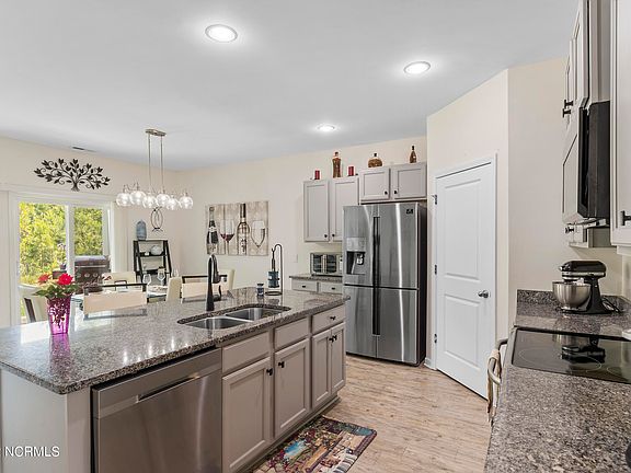 DR Horton's popular Cali floorplan on a quiet dead end street in desirable New South Bridge. No one on the right side of your home provides for a very private backyard. Affordable home in a great community. Home features a spacious great room, dining area with sliders to a covered back patio. Lovely kitchen with granite countertops and super sized island. 42'' Grey cabinets are complimented by the stainless appliances. Spacious walk in pantry. 4 Bedroom split floorplan. Private Primary Suite includes walk in closet, soaking tub, awesome oversized shower, dual sinks, great lighting. 3 Additional bedrooms all have great closets. Crown molding in some rooms. Smooth ceilings throughout. Laundry room with built in cabinets. All blinds and ceiling fans stay with the home. Covered patio on rear leads to very private back yard and side yard. Community features an awesome pool. Community RV storage. Par 3 Golf Course close by. Easy commute to Wilmington/Leland or North Myrtle. Located minutes from 17 and 211. Historical Southport and Beaches close by.