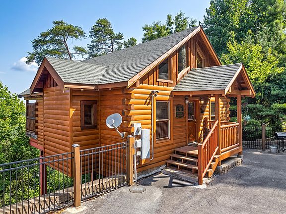 Charming honeymoon cabin with VIEWS in Black Bear Ridge! This cabin is rated as a Guest Favorite on AirBNB and in its top 1% of homes! This well laid out cabin is airy and bright, with cathedral ceilings and tons of windows. The open concept living area has definition of space without ever feeling closed off. Your guests will love cozying up with a book by the fireplace, or enjoying a soak in the heart shaped tub! There's even plenty of space for a pool table, and the kitchen is generously sized. The bedroom has a giant king size sleigh bed overlooking the view, with direct access to the large covered deck and hot tub. With a popular wedding venue in the development, you'll never lack for guests! Black Bear Ridge also has a seasonally available community pool. Don't miss out on this special property!