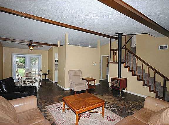 Don't miss out on this spacious home. Upstairs features 3 Beds with wood floors and 2 full Bath. 1 Bed with 1/2 Bath down. Stained concrete on main floors, New roof 2013. New carpet on stairs and hallway. Vaulted ceilings and stand alone fireplace in Living. Breakfast area and built in oven in Kitchen. This home is a must see. All furniture and appliances in home are negotiable.
