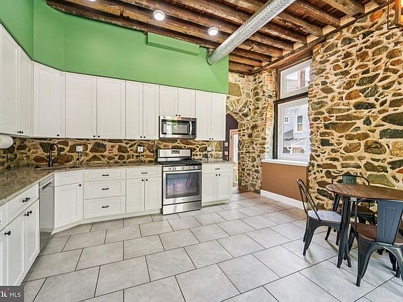 Utterly Unique 19th Century Two-Story in Franklintown Historic District! Originally Built as an Ice House and Converted to a Residence, this Home exudes Character in every room! Enter through Glass Double Doors to Updated Kitchen & Dining Room. Kitchen features Crisp White Casework, Granite Counters, Stainless Appliances, Ceramic Tile, and Original Stonework Backsplash. Airy & Bright Living Room with Hardwood Floors & Built In Bookcase. Two Large Bedrooms and Updated Full Hall Bath Complete the Main Level. Upper Level Loft Bedroom with Vaulted, Original Exposed Timbered Ceiling and Walk-In Closet, and Updated Full Bath. Lower Level Primary Suite, with Dual Walk-In Closets and Huge Updated Bath with Dual Vanity, Jetted Tub, Large Walk-In Shower and Private Water Closet with Sink. Basement features Storage and the Original Ice Room – a Two Story, Totally Stonework Vault with Countless Interesting Possibilities! Large, Level, Fully Fenced Rear Yard. All Mechanics (Windows, Roof, HWH, HVAC) Believed to be Replaced with 2018 Renovation. Easy access to I-70 and 695 – only .6m to Security Park & Ride and .8m to Gwynns Falls Trailhead. VA Assumable loan with apx $135K balance at 2.25% - buyer must use own eligibility - 2nd loan potential for gap with 5% minimum down payment. Parking detail is available in documents.