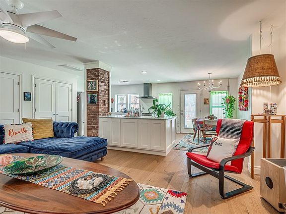 This custom remodeled home was taken to the studs & rebuilt-quality all the way! From the silver Oak flooring throughout to the extensive tile work and crystal bathroom light fixtures you’ll see no corners were cut. The kitchen is a dream with a 6 burner gas stove, custom cabinetry with pullouts, and a large pantry-sparkling recycled glass countertop on the island. An antique buffet was converted to a double vanity in the master bath-complete with quartz countertop. Second master boasts a walk-in shower and a modern raised tub–complete with crystal chandelier. Third bedroom has good closet space & lots of natural light. Hall bath has extensive tile work reminiscent of the 1940s & large built in cabinets. The enclosed front porch is a great place for morning coffee or visiting with friends. Backyard is large and fully fenced with a sliding driveway gate. All bedrooms have TV wall mounts with electric & cable wiring. Roof (‘24), H/Air (‘22), fencing (‘19) plumbing,electrical,gas, tankless H2O, sewer line (‘17). This home is definitely not a flip! Just hop on your bikes & ride up to The Plaza for a day of fun! *This is listing Realtors personal home