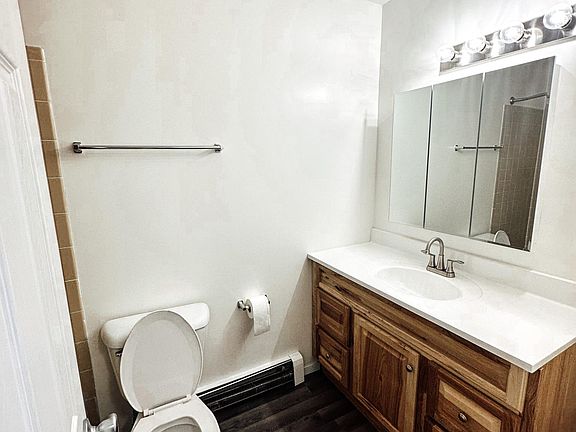 Freshly painted spacious two bedroom, two full bathroom apartment with all new flooring, light fixtures, doors and vanities. This apartment features a large walk in closet with a very spacious master bedroom and it's own private bathroom. Each apartment comes with a dedicated parking space in the heated garage as well as a private indoor storage unit. Owner pays for water, sewer, trash, heat and snow removal. Tenants pay for electricity and Wi-Fi. We do not allow smoking inside of the apartments or common areas, but we do allow tenants to smoke in the garage to keep warm.