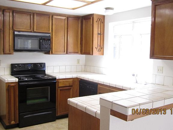 3bed 2bath 1,661 sq ft 6,000 lot size 2 car garage Built in 1985 Tile countertops in kitchen Maple cabinets Black appliances Laminate flooring in kitchen Carpet throughout home White paint throughout home Ceiling fans Wood burning fireplace Living room, family room, dining room combo Single story and court location quiet neighborhood Come and see what this beautiful home has to offer!!