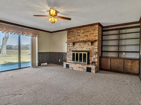 This 3-4 bed, 3 full bath home with over 2200 square feet offers a great location in Mt. Vernon's desirable Country Club Estates. A 13x8 covered porch and brick walled courtyard greets you at the front of the home. Enter through the double wood doors to a unique parquet floor entryway with two large closets. The split bedroom design includes an owner's suite with a full bathroom, and the other two main level bedrooms are close to an additional full bathroom. The brick fireplace with built-in shelves is the focus of the open concept living room which flows into the large eat-in kitchen with stainless appliances. A main level laundry, large screened-in back porch, concrete & brick paver patio for grilling, flat lawn, as well as a 2.5 car garage with a workshop alcove round out the main level. Downstairs you will find a finished basement which just needs flooring of your choice. It is built out with a family room and brick surround wood burning fireplace, extra bedroom (no egress), a full bathroom, closets, and two unfinished storage rooms. Updates include (approx): HVAC 2010 (new A coil 2015), humidifier 2019, water heater 2024, master bath vanity and shower 2020, kitchen flooring 2020, stainless appliances.