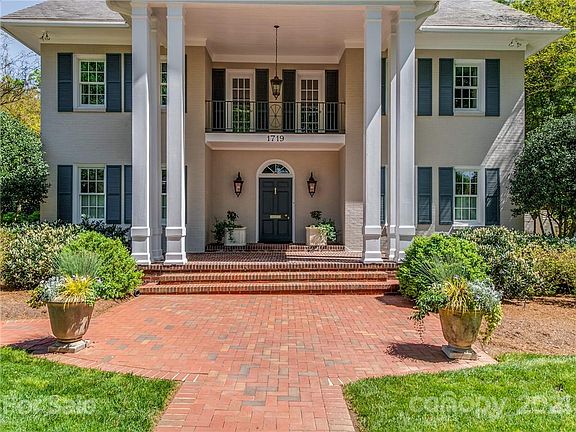 Stately 2 story brick on Charlotte's most revered street. Great curb appeal and extensive front yard landscaping. Slate roof, columned front porch, 9' ceilings, elegant curved staircase, paneled den, intimate and unique Media room with acoustical paneling with adjoining wine closet. Laundry room with additional half bath. Master bedroom has His and Her closets, office, 3 additional bedrooms, upstairs stack washer and dryer. Large Bonus room for play area and storage. Recently installed new Anderson windows throughout most of the house along with exterior doors for much of the house. Expansive brick terrace that looks out on beautifully landscaped back yard. 2 car detached garage with storage room. Five hole synthetic turf putting green complete with lighting.