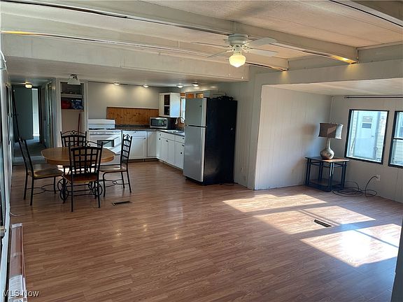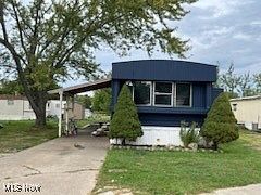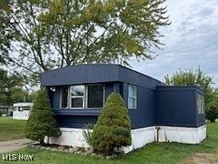 Updated 3 bedroom mobile home in the Ashtabula Harbor! New exterior doors. Covered patio and front entrance. Gravel base for shed added, so just pick your new shed! Everything is done for you! New back stairs. Exterior painted in "Naval" for the neutral blue modern factor (September 2024). Interior was all painted Spring of 2024 in "Big Chill"gray keeping with a modern look. Roof was resealed 2023. Large living room. Open concept dining/kitchen/LR. Vinyl plank flooring in entry way and bathroom as well as the laundry "closet" area. Kitchen remodeled. Subfloor reinforced allowing for standard lower cabinets and a lazy Susan with the update. Original upper cabinets updated for "open shelving" look. A cute little pantry for storage too! New counters and faucet (2022). Bathroom remodel 2022 and features a shower/tub combo. Some new vinyl windows. Bedroom doors replaced (photos do not show). All appliances stay with the home, including washer and dryer. HWT was upgraded to a 6-8 person capacity in 2022. All LED lighting in every room. And adding central air is possible! Contact your agent or the listing agent as viewings will be by appointment only and notice is required. Park approval is necessary for buyers/new occupants and must be a contingency factor for all offers. Lender Financing IS a possibility with a few lending sources....contact the listing agent if you need assistance in those connections to help make your home ownership goals. Sorry, no rent to own possible.