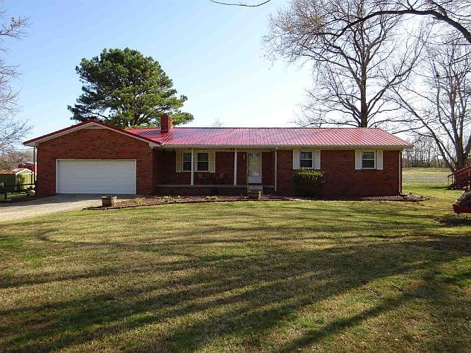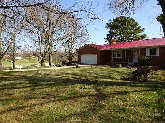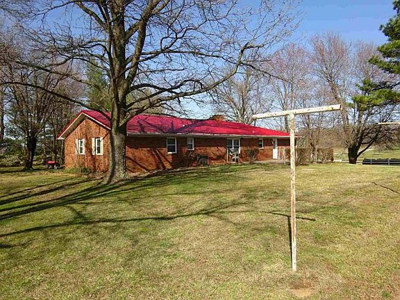 Craving the peace and quiet that can only be found in the country? Then this almost 10-acre property is just what you're looking for! Step into this 3 bed 2 full bath, all-brick ranch and you'll immediately notice the lovely hardwood floors that run throughout the bulk of the home. Freshly painted walls provide a blank canvas on which you can make this cheerful home truly your own! The master suite includes a full bath with walk-in shower. Additionally, there are two more nicely sized bedrooms as well as a hall bath featuring a large tub and abundant cabinetry. Anchoring the large living room is a wood burning stove with brick hearth and unique wood paneling. The kitchen includes ample cabinet space as well as a breakfast nook and adjacent room perfect for dining room, office, or playroom. Lots of natural light streams through the replacement windows and each room has a lovely view of the property. Metal roof new in 2020; all appliances and washer and dryer included. Step outside and you find a park-like setting as well as an above-ground pool and deck. The included acreage provides plenty of room to spread out with pasture, hay field, and stocked lake. The large pole barn includes 6 horse stalls, tack room, workshop, loft, 2 sliding doors, and 2 overhead doors. Garage, pole barn, sheds, pool and pool deck are all being sold as-is.