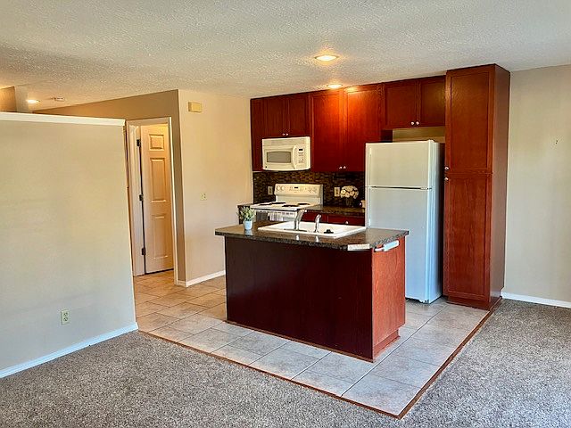 Warm rich colors, plush carpeting, tile flooring in kitchen & bath