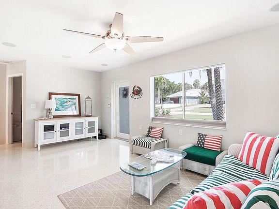 Charming waterfront escape in one of Florida's happiest seaside towns. Spend the season in comfort - this 2 bedroom 1.5 bath has all you need! Open floor plan, water views from almost every window, lush backyard & 70' of waterfront. Large vessels dock with ease at this address. 2 / 1.5 CBS Home Living room Dining room Kitchen Laundry room (inside home) Covered patio Covered porch
