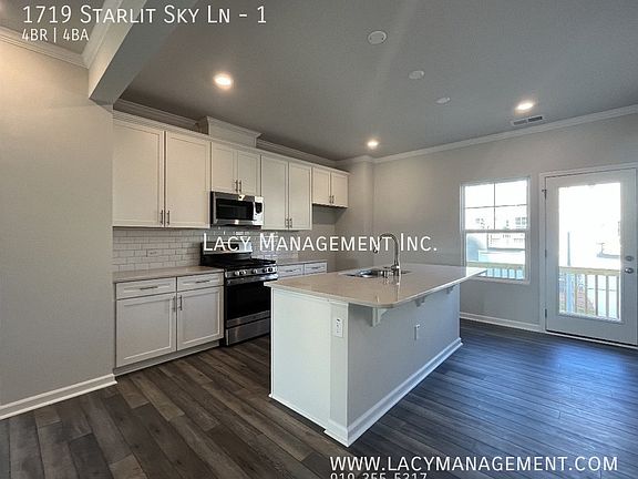 This 2271 square foot townhome home has 4 bedrooms and 3.5 bathrooms. This home is located at 1719 Starlit Sky Ln #1, Cary, NC 27519.