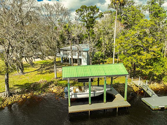 Beautiful Steinhatchee River Home! This immaculate 2 bedroom 2 bath home boast 90+ feet of waterfront property in addition to your very own boathouse with electric lift and deep water access to the Gulf of Mexico. Inside you'll discover a well maintained home featuring beamed ceilings, spacious living room, large kitchen/dining combo, 2 large bedrooms and bathrooms, with a walk-in shower, and one with a combo tub/shower. Parking and enclosed work shop/storage under the home provides adequate space to store all of your fishing and kayaking equipment. Steinhatchee is well known for its fishing and scalloping. Perfect spot for a family vacation home, as well as an income producing opportunity. Must see views on this beautiful riverfront Steinhatchee home!! Call today for schedule your personal tour!