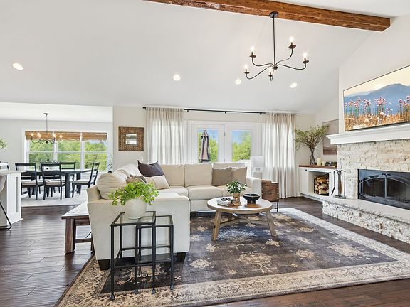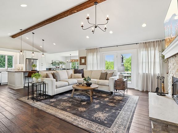 Welcome to your dream home-this beautifully crafted 2018 custom build sits on over 1.68 acres of private, scenic land. Designed with both comfort and style in mind, this home offers exceptional indoor and outdoor living. Inside, you'll find warm handscraped walnut floors and an open-concept layout that's perfect for everyday living and entertaining. The gourmet kitchen features granite countertops, soft-close cabinets, NEW stainless steel appliances, and a large island-ideal for home chefs and hosting guests. The whole home has been freshly painted with a newly added beam running the width of the main room bringing additional warmth and style to the home. The main level includes two spacious bedrooms, including a luxurious owner's suite with vaulted ceilings, dual sinks, and a walk-in shower. Downstairs, enjoy a fully finished walk-out basement with two additional bedrooms, a full bathroom, and a huge family room-great for guests, a home gym, or movie nights. Step outside to relax on the WeatherTech deck or soak in the hot tub, all while enjoying the peaceful surroundings. Whether you're hosting a gathering or savoring a quiet evening, the expansive backyard offers unmatched privacy and comfort. Additional features include a wood-burning gas fireplace, NEW light fixtures modern finishes throughout, and plenty of storage, NEW epoxy floor in garage and NEW metal cabinets. This home combines high-end features with a serene country feel-just minutes from town, the Fox River and the McHenry Classic Outdoor Theater!