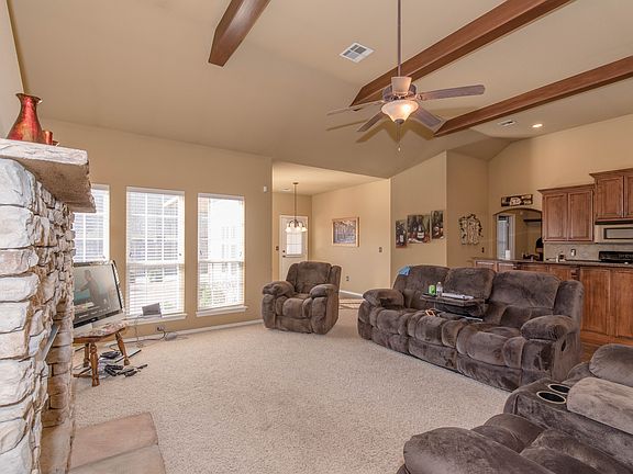 Immaculate! Split Plan, kit island separates liv, New hardwoods in guest rm, computer desk area off laundry, Gorgeous beams in kit & living, granite, SS appl, private bkyd w/stamped concrete patio w/waterfall feature. Sprinkler system & security.