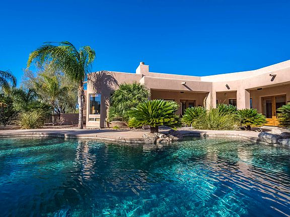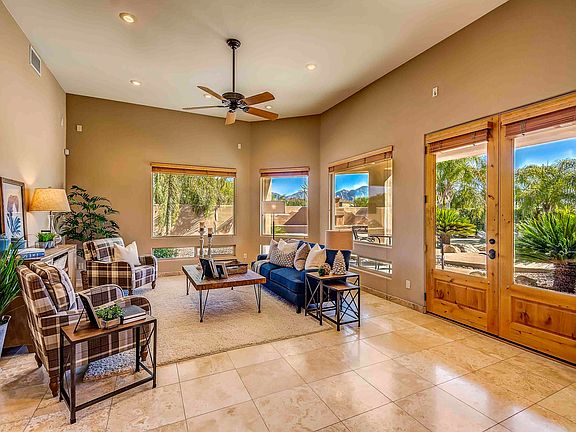 From the moment you drive into the circular driveway, the fountain & courtyard draws you into this resort-like home situated on 3.3 acres. This adaptable floor plan offers options that will meet your lifestyle. From the moment you step into the foyer you will spot the fine finishes of natural stone, high ceilings & large windows. If you enjoy the outdoor lifestyle this home will deliver more than can be imagined. The backyard offers views, space to play, swim, BBQ, entertain, & dine. The salt water pool, spa, rock waterfall, TWO outdoor fireplaces & BBQ w/seating all offer endless enjoyment. Living room wet bar & FP, gas cook top in kitchen, bedrooms w/private baths, walk in closets, master bdrm FP & more. HUGE pantry & laundry room w/extra storage room in garage. Plenty for all your toys!