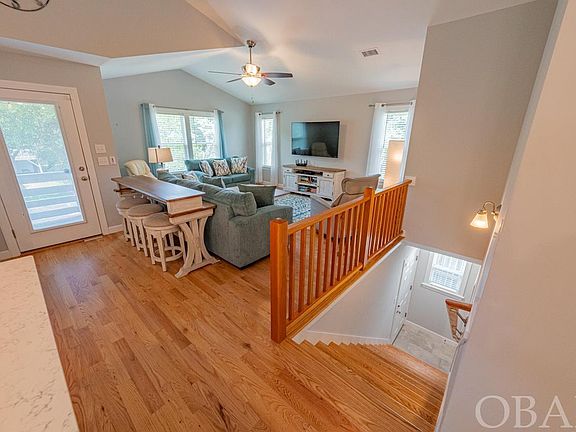 Welcome to In The Moment! This beautifully crafted 4-bedroom home is perfectly tucked away in the heart of Kill Devil Hills and has everything you need, whether you’re looking for a primary residence, a second home, or a fantastic investment opportunity. The home features stunning hardwood and tile floors, sleek stainless steel appliances, and quartz countertops that are sure to impress. The top level offers a spacious master suite with a king-size bed, double vanities, and a walk-in shower, along with two queen bedrooms and a second full bath. The open floor plan flows easily between the living room, dining area, and kitchen, which includes a breakfast bar for quick bites or entertaining. Downstairs, you’ll find a second master suite with a king-size bed—perfect for guests, in-laws, or even a rental unit. Outside, enjoy your fenced-in yard with a patio ready for grilling, an outdoor shower to rinse off after beach days, and a garage for all your toys and gear. The location couldn’t be better—you’re just minutes from shopping, dining, a movie theater, and some of the area’s best attractions. Whether you’re biking along Bay Drive to the Wright Brothers Memorial or heading to the sound and ocean beaches via W Third Street, you’ll love how convenient and central everything is. In The Moment is where the best of Outer Banks living comes together—comfort, style, and beach life, all in one!