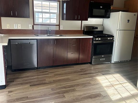 Welcome to Lot #3 in the sought-after Mountainside Estates community. This beautifully maintained 2-bedroom, 2-bath home offers approximately 960 sq. ft. of thoughtfully updated living space. Step inside to a bright and inviting living room featuring vaulted ceilings and newer engineered flooring throughout. The adjoining eat-in kitchen is both stylish and functional, showcasing updated cabinetry and ample space for dining and entertaining. NEW furnace and central air conditioning.