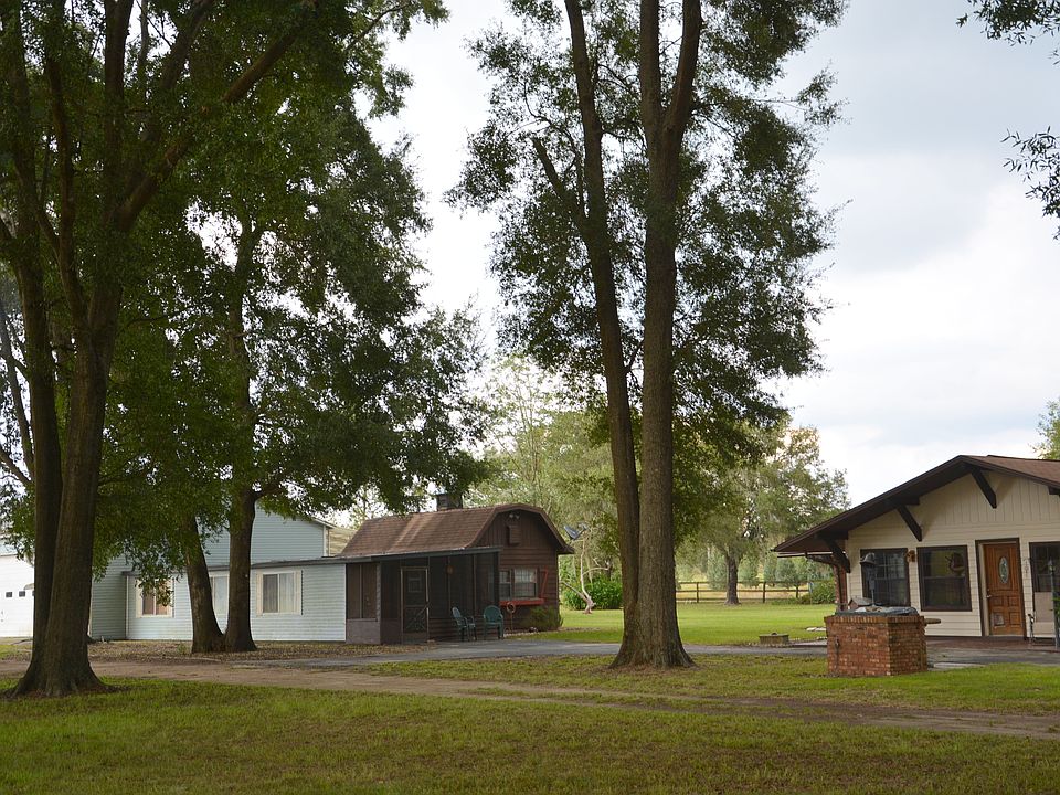 OWNER MOTIVATED!!!! 10 Acres, Main house 3/2, Guest House 2/1, Screened in Pool and the 6 stall Barn! This property is ready for your horses and livestock. It is Fenced with some No-Climb, 3 Board, Back Pasture is wire. This camp like setting has the main house nestled under huge Oak Trees, yard and entire farm is fenced. Yard is fenced and gated with a custom iron gate, brick pillars. The house has a nice open kitchen, huge beautiful brick fireplace and a Florida Room that easily holds a regulation size pool table. The IN-LAW Cabin is set with two nice sized bedrooms, very large living room and a cute kitchen with new cabinets. Garage has two double sized overhead doors, inside set into the concrete you will notice a motor stand, spacious work shop and tons of storage. The Barn has over-sized tack/feed room, 6 stalls, rubber mats, water everywhere. Pastures are split three ways. Two smaller and one large. Plenty of places to ride, Hits is approx 15 miles/Goethe Forest about 6 miles. Perfect Winter Getaway!