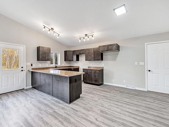 Move-in ready ranch home with walk-out lower level. Completely renovated in 2025! Situated on ¾-acre lot that backs to no homes. Offers freshly painted interior with new waterproof vinyl flooring and modern light fixtures throughout. Open-concept main living area boasts vaulted ceiling and flows seamlessly into the kitchen, showcasing all-new cabinetry and countertops. Main level also features two bedrooms with generous closets, a fully renovated bathroom and convenient laundry area. Newly finished lower level offers daylight windows, door to the backyard, a third bedroom and a full bath with a walk-in shower. The windows and furnace have been updated within the last five years. Located in the heart of an extensive ATV and snowmobile system, minutes from golf courses and many lakes.