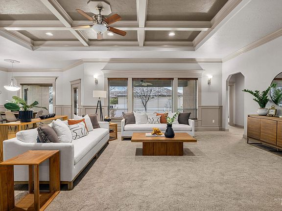 Parade of Homes: This stunning custom single-level home in the desirable Stiehl Falls subdivision offers luxury and comfort on a spacious 1/2-acre corner lot. Features include 4 beds, 2.5 baths, flex room, hardwood flooring, coffered beamed ceilings, custom double crown moldings, & raised panel wainscoting throughout. The gourmet kitchen boasts top-tier custom cabinets & 3 cm slab granite, while the floor-to-ceiling stone fireplace is the focal point of the spacious living room. The master suite is a true retreat with heated tile flooring, a huge walk-in tile shower, & separate soaking tub. Outdoors, enjoy the covered patio, custom sun shades, and raised garden boxes amid mature landscaping. Convenient access to freeways, shopping, and the hospital make this home the perfect blend of luxury and practicality. Some upgrades include outdoor paint summer '24, storage shed, central vac system, epoxied garage flooring, over sized garage, & overhead garage storage.