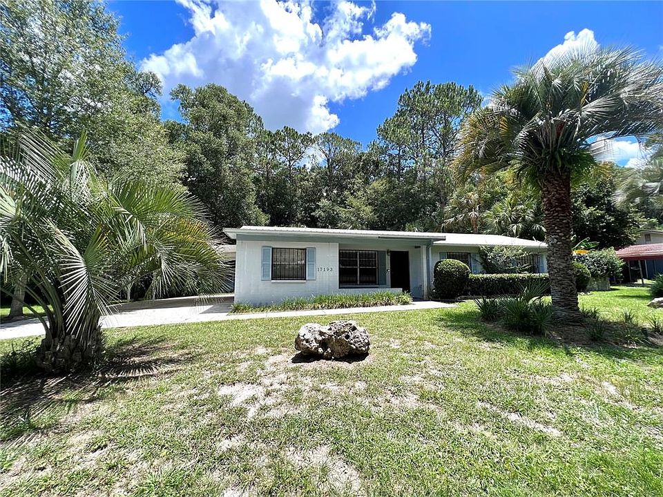 It is the TIME TO BUY! Motivated seller is willing to contribute $4000 towards to buyer's buy-down rate to help the buyer's lifetime loan savings with a full-price offer. This 3 bedroom, 2 bathroom, well maintained, solid concrete block home sits on an OVERSIZED LOT with a charming, open patio, private garden with a screened Cabana, and mature landscaping in the back, partially fenced with brocks, so no fence maintenance cost down the road. The home features crown molding, hard surface flooring throughout the living space with tiled floors in the kitchen and bathrooms. Off the kitchen is a private dining room and this leads to the large family room. The enclosed rear porch is heated and cooled as a bonus living space. The laundry/utility room is off the enclosed carport area. The new metal roof was installed in 2020, the HVAC was replaced in 2019, and the water heater was replaced in 2017. A new city sewer system and pipes, asphalt road and culverts, and an automatic attic fan system were recently been added to the home features. There is also a newly installed, large storage building with electricity. This home is conveniently located only 2 minutes away driving distance from downtown High Springs, and a short distance to visit several natural springs around. Call for questions to be answered.