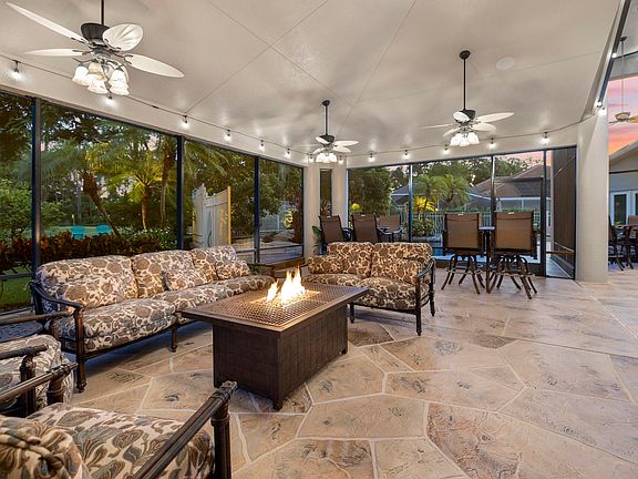 Stunning home in gated Binks Estate featuring lagoon style pool/spa (salt system) w/3 bench seating, whole house generator w/500 gallon propane tank, impact windows & doors thruout. Home Theater w/110'' Screen & 4K projector, 2 rows w/ 8 electric reclining theater seats, plus equipment rack w/ blu-ray changer, 4K Apple TV, blu-ray, 7 speaker sound system plus more. Huge open floor plan,20ft & 14ft ceiling,gourmet kitchen,upgraded appliances including GE profile induction cooktop, convection/microwave, double wall oven, Samsung smart fridge and custom shelving in pantry. Extra large screened/concrete covered patio w/faux slate decking is perfect for entertaining. Tile roof replaced 2018, commercial grade garage flooring, upgraded landscaping & lighting.Upstairs loft or additional bedro Impressive soaring ceilings in living areas, formal dining room, eat in kitchen and breakfast bar, built in wall unit in family room (tv included) upgraded baseboards in main living rooms and primary bedroom, central vac, huge inside laundry room with bonus storage area, wash tub and extra storage room off patio. Primary suite and additional bedroom with en-suite bath located downstairs. All bedrooms upstairs en-suite with walk in closets. Beautiful garden and golf course views of the 10th hole. Kids can walk or bike to "A" rated schools. Close to equestrian venues and shopping.