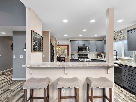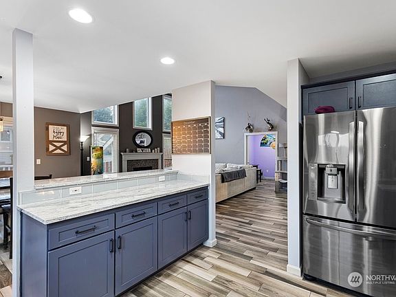 Situated on over half an acre w/peekaboo views of Big Lake & the Cascade foothills. Welcome to Nookachamp Hills w/this updated 4bd, 2.5ba, 3,300 sqft home. This elegant home offers a primary suite featuring a lg walk-in closet & spa-like bath. Vaulted ceilings, & seamless integrated living & dining areas. Kitchen w/natural light, granite counters, stainless appliances. Bonus office & finished basement suite. Private partially fenced yard, porch, & deck are perfect for entertaining. RV parking (50-amp hookup). Forced air heating/cooling. Don't miss out on this stunning property with private access to Otter pond, where you can swim, practice catch and release fishing, or enjoy the trails. Country setting just minutes to town.