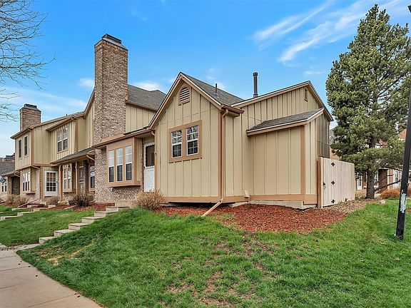 Tri-level townhouse in a wonderful location. End unit with an open layout. Wood-burning fireplace in the family room. The skylights offer great natural lighting. Attached, small shed just outside the patio door. The fenced patio is unique for a condo and is a great feature for entertaining, gardening and small pets. Reserved parking spot in front of the unit, additional non-reserved parking available. This property feeds into the highly accredited Cherry Creek School District. Close to public transit. Less than a block to retail, dining, and Starbucks. Public library and Cherry Creek State Park only minutes away. Washer and dryer included.
