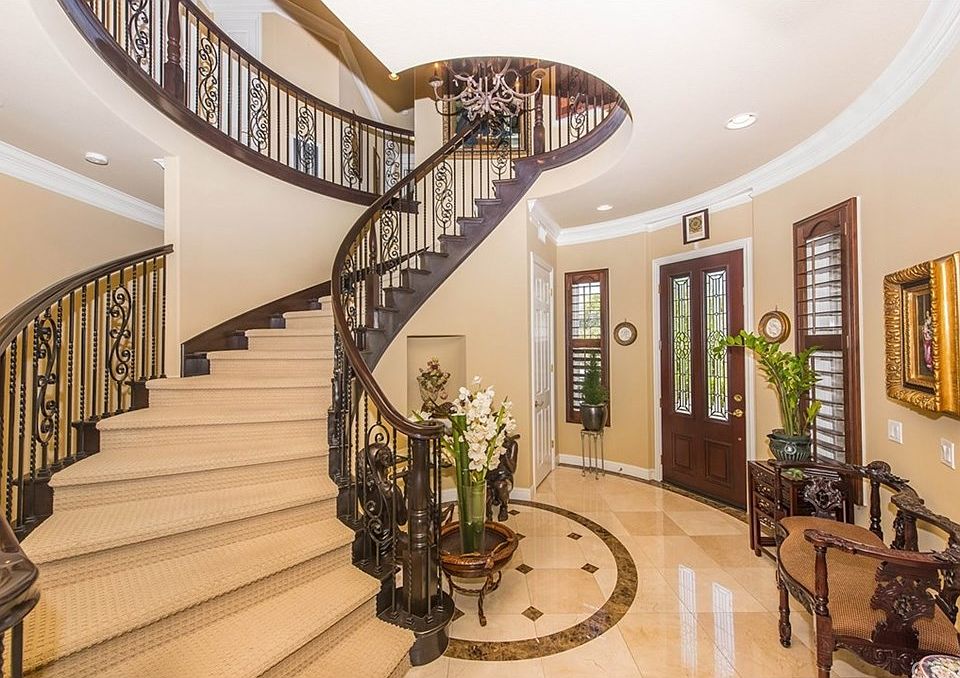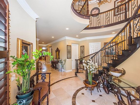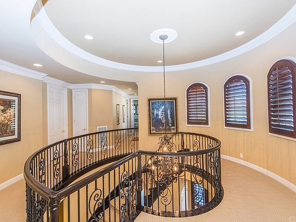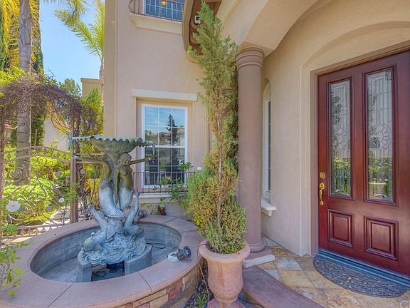 This gorgeous home built by Toll Brothers is located in the Links collection of Vista Del Verde Golf Community. The home features a spacious panoramic city light and Catalina Island view- as well as seats to Disneyland's fireworks. The home is walking distance from local spots such as Lakeview Elementary School, Black Gold Golf Course, Vista Del Verde Park, and various hiking trails. The home features 4 spacious bedrooms,3, 1/2 bathrooms, an office, and 2 balconies on the second floor, over $300,000 in upgrades in high quality, custom work. The paved driveway features a private iron gate and rustic fountain. The stained glass entrance gives way to a marble medallion floor, sweeping iron staircase, as well as a formal living room & dining room with a fireplace. Decorative mahogany shutters adorn the walls with custom crown molding and two tone paint. A ground floor features 1 full bedroom, private office room with a custom built bookcase, open floor family room with custom built entertainment niche plus fireplace, A gourmet kitchen. The kitchen features a large granite countertop island, walk in pantry, and upgraded stainless steel appliances. The second floor has a full master bedroom with a marble bathroom, jacuzzi, and balcony. 2 other bedrooms on the second floor share the second balcony for a cozy touch. The backyard has a large Koi pond, custom built fireplace, gazebo,Barbecue area+additional features.
