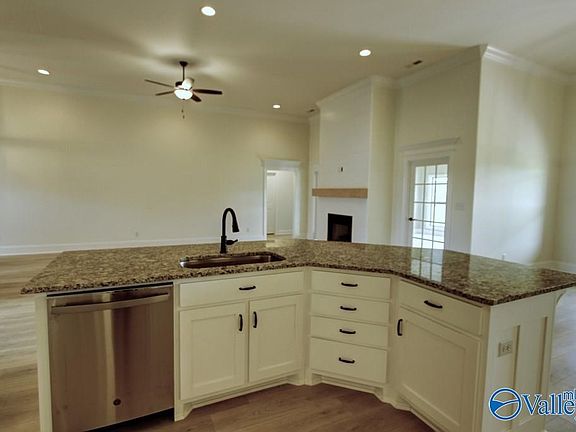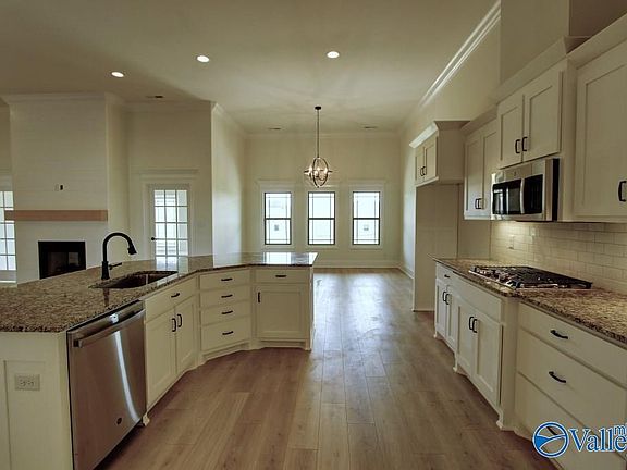 Less than a year old open plan w/ 4 bedrooms, 3 baths, dining room & sunroom. 3 car garage! Family Room w/12' ceiling, gas FP w/shiplap & floating mantle, Rev-wood floor, recessed lighting, ceiling fan & ext. trim; Formal Dining Room w/10' coffered ceiling, ext. trim & Rev-wood floor; Open kitchen with 12' ceiling, granite, custom cabinetry, dbl. ovens, walk-in pantry, Rev-wood flooring, back splash, & large island bar seating; Master bedroom w/double trey ceiling, recessed lights, Rev-wood flooring & ceiling fan. Glam bath w/11' ceiling, tile shower with corner seat & shelves, & double granite vanities; Sunroom w/12' ceiling & Rev-wood