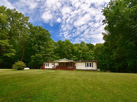 Out of the Tension Zone! Ranch style home nestled on 10 wooded acres with a pond. You will love the space in this almost 2000 sq ft home, 3 bedrooms, 2 full baths, formal living & dining room, family room with natural fireplace, first floor laundry room, breakfast nook, all appliances included, partial finished basement and 40x30 pole barn. This is a manufactured home.Seller is related to agent