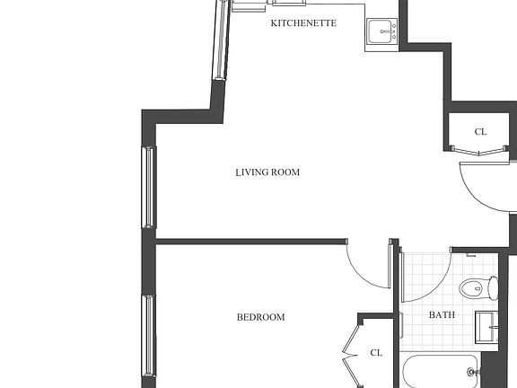 **Residence 8D- Sprawling 1 Bedroom Layout with Alcove Kitchen**