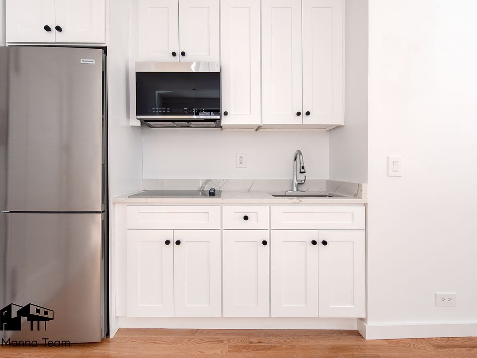 Introducing the epitome of modern living in the prestigious Flatiron neighborhood of Manhattan Welcome to 172 5th Avenue Landmark Building! Embrace the opportunity to be the very first tenant of this exquisite, completely renovated apartment. This renovated unit with an oversized closet also boasts: Immaculate brand new interior design. Kitchenette adorned with elegant marble countertops and backsplash Stainless steel appliances for a sleek and modern culinary experience Stylish white cabinets with chic black hardware Impeccable bathroom boasting oversized marble tiles Kholer shower head and a deep soaking tub for ultimate relaxation Contemporary vanity and light fixtures Gray oversized floor tiles adding a touch of sophistication Gleaming new hardwood floors throughout Ample storage space with a large, spacious walk-in-closet Newly installed windows for abundant natural light Heat and hot water included. The building itself offers an array of desirable amenities: Elevator for effortless access to your new home Dedicated live-in superintendent to promptly address any concerns Proximity to renowned destinations such as Madison Park, Eataly, Trader Joe's, Whole Foods, and an abundance of shops -Excellent transportation options with convenient access to multiple train lines including 1/6/R/N/W/F/M Don't miss out on this incredible opportunity to reside in one of Manhattan's most sought-after neighborhoods. Contact us today to schedule a viewing and make this stunning apartment your new home!